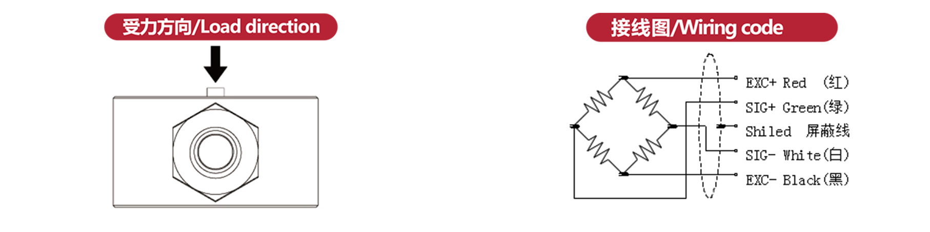 Ex+:紅;Ex-:黑;Sig+:綠;Sig-:白 |
