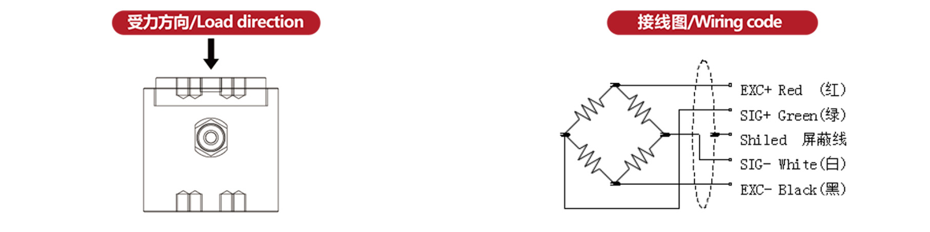 Ex+:紅;Ex-:黑;Sig+:綠;Sig-:白 |